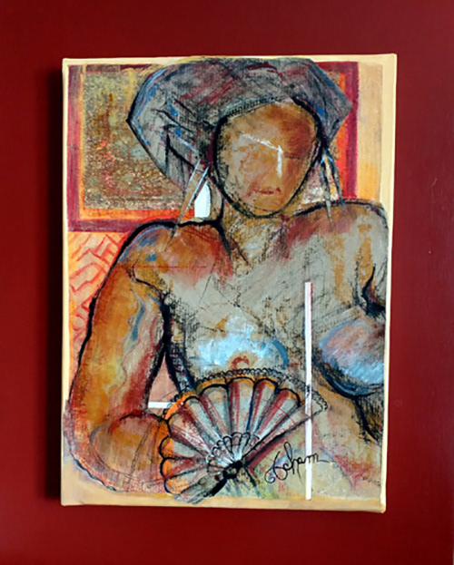 Technique mixte collage fusain acrylique