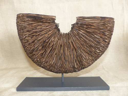 Sculpture en carton en demi-cercle colorée au brou de noix